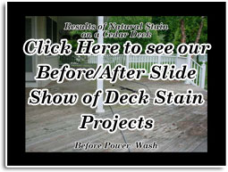 We do not use any type of bleach cleaner. These products destroy your wood, weakening the fibers and destroying your protective coatings. Then after the deck has properly dried out (usually within a couple of days), we will return and apply one of our wood protectorants. Don't be fooled by the mass marketed water repellents. Our products last and will protect your wood.