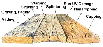 shrink. These cycles of wet and dry, swelling and shrinking, cause wood to warp, split, crack, and check. This causes wood to have a shorter life span, needing expensive repairs, or replacement. |